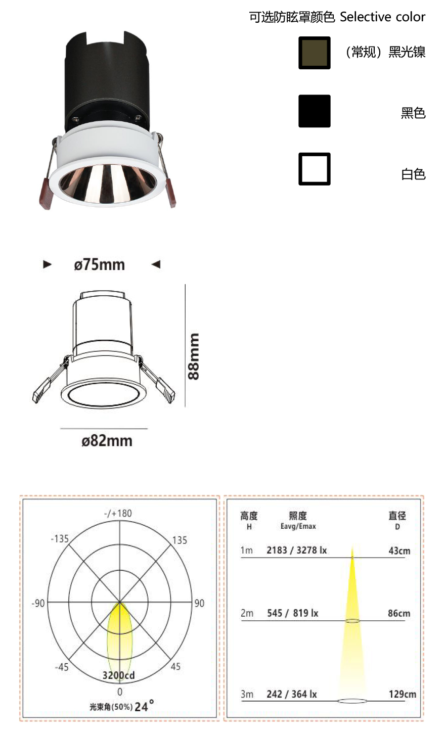 柔光系列天花灯采用压铸散热器与注塑结构件组成,保证优异性能同时兼具经济性;全系产品可支持0-30°单向照射角度调节对比同类功能产品,灯具高度较低,适合多种安装条件部分产品有三色出光防眩罩可选,搭配使用效果更佳