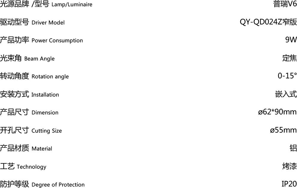 定焦圆斑可调角 9W 12° Φ5.5cm