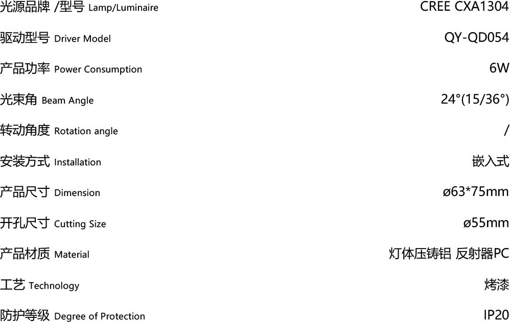 灯体材料使用高纯度铝和 PC材料组装而成,表面采用高温烤漆和电镀处理工艺,反光杯具有黑砂镍,白光铬,黑光镍,香槟金四种颜色可供选择,用户可根据不同室内环境风格的需求选择不同的杯体颜色75开孔可选圆孔和椭圆孔面盖,通过减少发光面尺寸增大遮光角,在改变光束形状的同时极大改善灯具在实际使用时的眩光情况开孔尺寸广泛,从直径55mm到直径190mm;直出式发光和洗墙式发光,有可调角款可选,可随意调节,转动角度为0°到30°采用机械自锁支架安装方式,更安全可靠