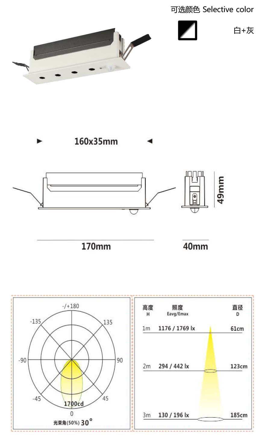 本系列产品具有多种规格可选模组透镜经特殊的光学处理,搭配防眩圈,防眩效果出色