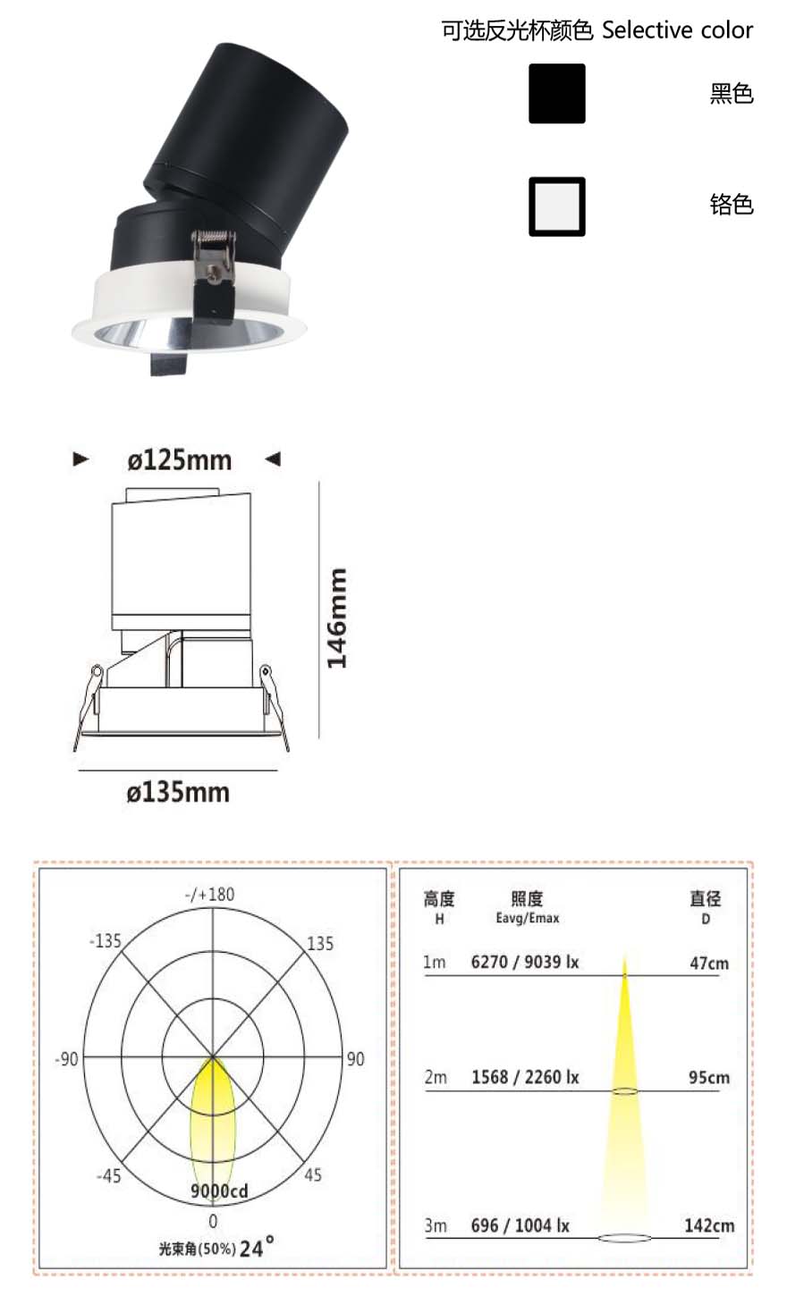 灯体材料使用高纯度铝和 PC材料组装而成,表面采用高温烤漆和电镀处理工艺,灯具具备调角、直下、无边框预埋等规格可选,部分产品还可选择偏光,的款式。多种出光口配件可选,组合后实现多样出光效果。标配3500K与KEEY-BUS调光调色开孔尺寸广泛,从直径55mm到直径150mm;采用进口COB光源,搭配企一集团公司自主研发高精度恒流控制器经济节能,安全稳定