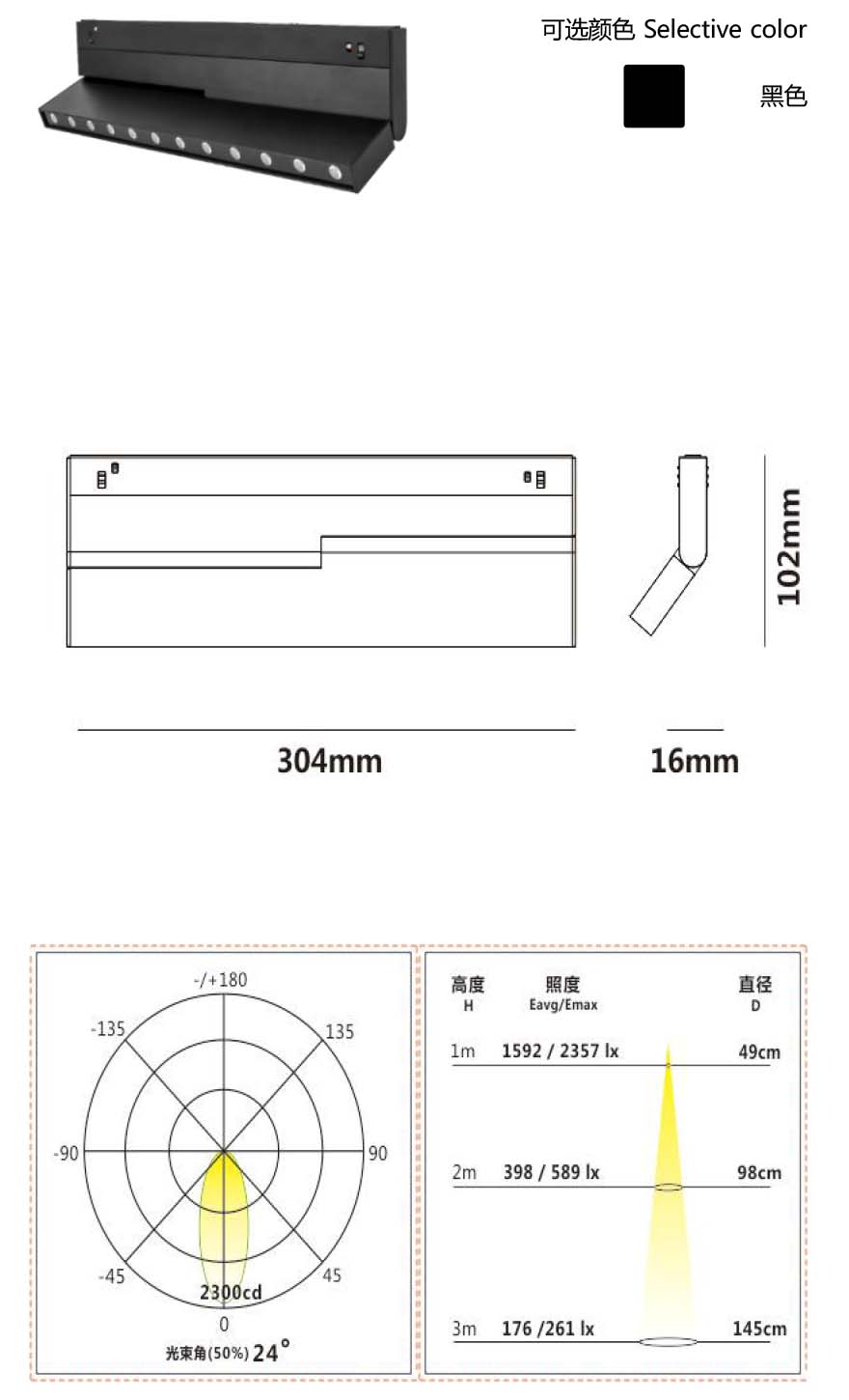 48V低压电路设计,通电后也可安全触碰保证使用安全采用磁吸系统,灯具可以直接插入轨道,自由移动替换,竖装不掉落配合有L型I型等各种连接接驳,安装简单自由;可折叠产品结构,实现大角度的照射方向调节,适用于多种使用场景灯具设计有两种出光规格,窄光束的透镜和宽光束的扩散板,同一灯具实现多种效果