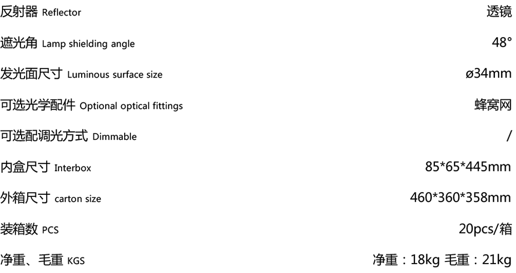 可折叠产品结构,实现大角度的照射方向调节,适用于多种使用场景灯具设计有两种出光规格,窄光束的透镜和宽光束的扩散板,同一灯具实现多种效果