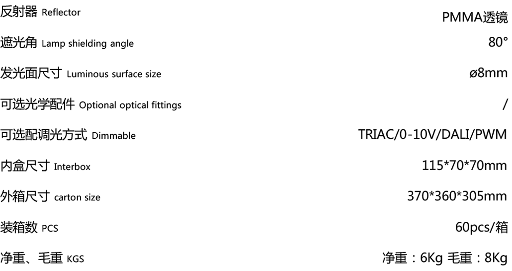 本系列产品具有多种规格可选模组透镜经特殊的光学处理,搭配防眩圈,防眩效果出色