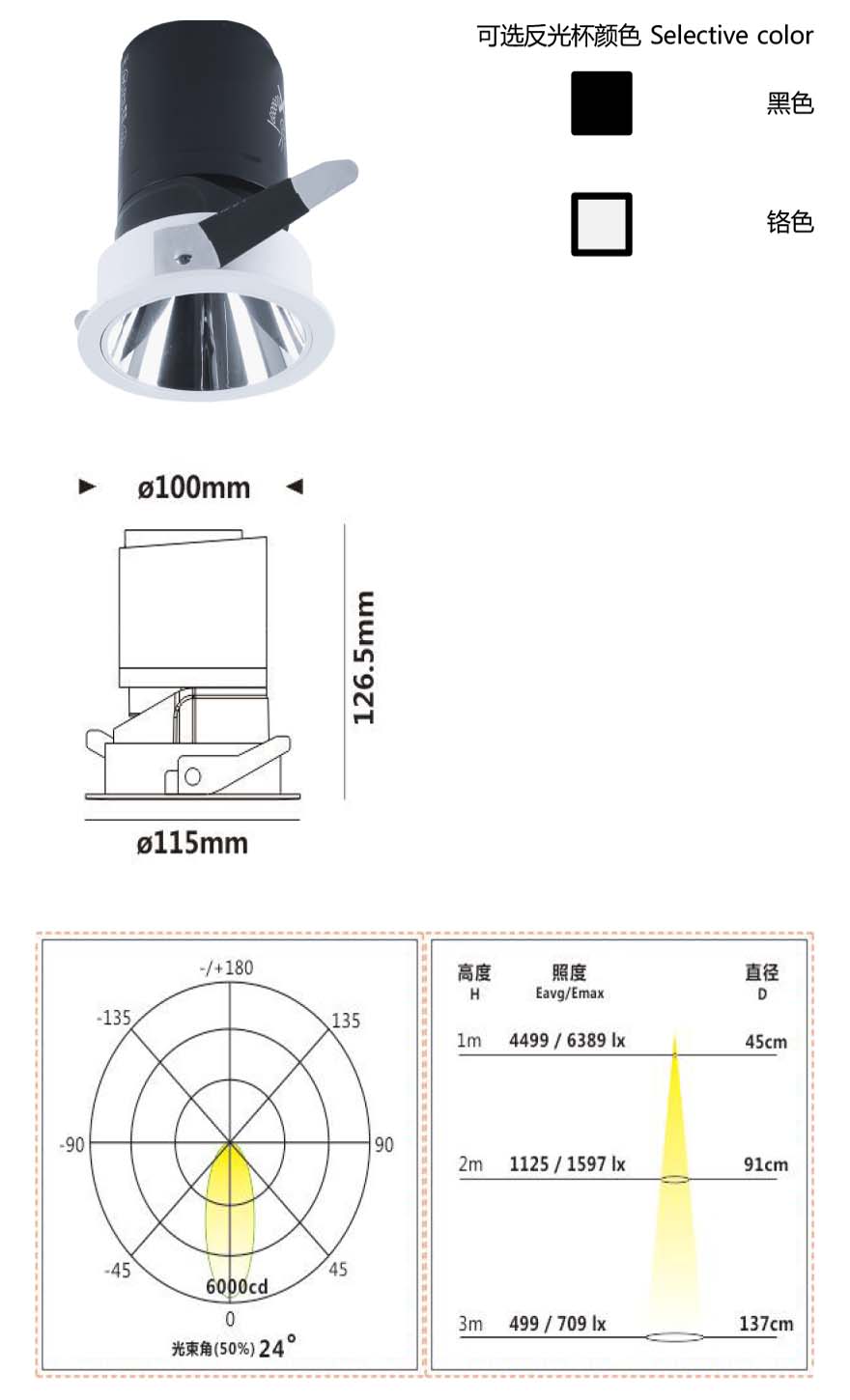 灯体材料使用高纯度铝和 PC材料组装而成,表面采用高温烤漆和电镀处理工艺,灯具具备调角、直下、无边框预埋等规格可选,部分产品还可选择偏光,的款式。多种出光口配件可选,组合后实现多样出光效果。标配3500K与KEEY-BUS调光调色开孔尺寸广泛,从直径55mm到直径150mm;采用进口COB光源,搭配企一集团公司自主研发高精度恒流控制器经济节能,安全稳定