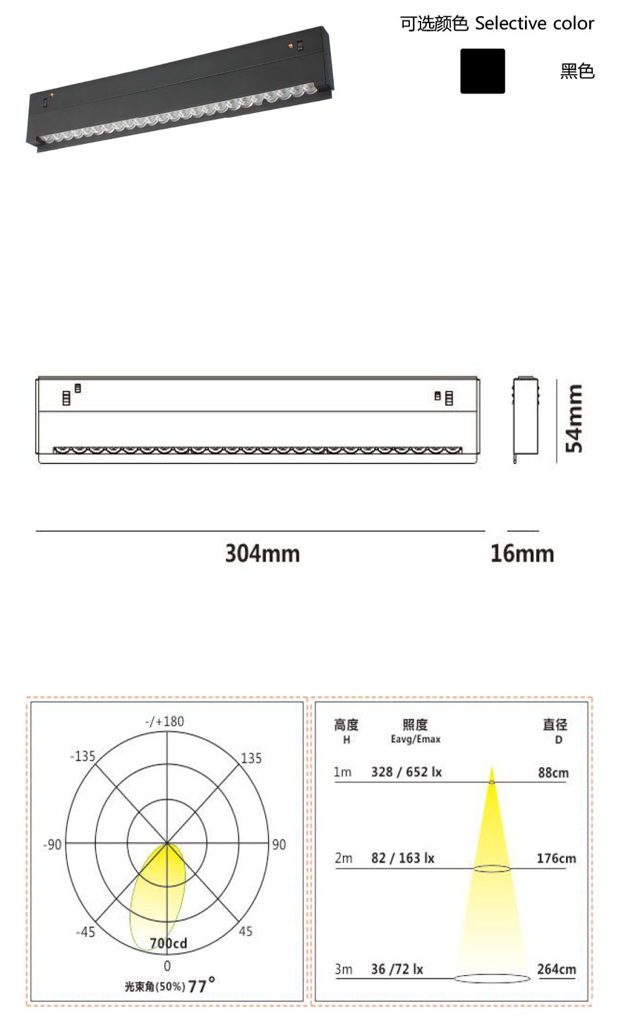 48V低压电路设计,通电后也可安全触碰保证使用安全采用磁吸系统,灯具可以直接插入轨道,自由移动替换,竖装不掉落配合有L型I型等各种连接接驳,安装简单自由;可折叠产品结构,实现大角度的照射方向调节,适用于多种使用场景灯具设计有两种出光规格,窄光束的透镜和宽光束的扩散板,同一灯具实现多种效果