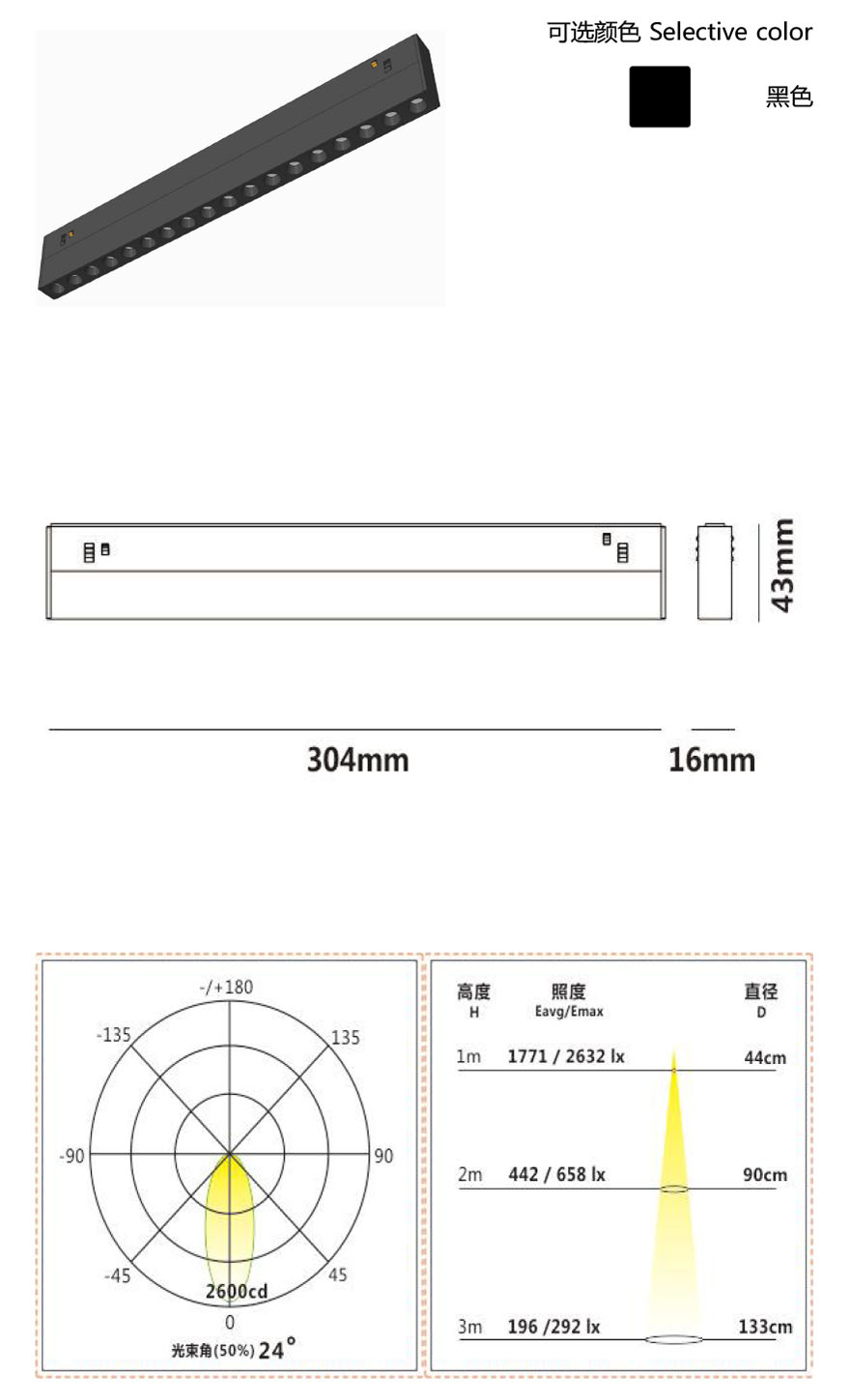 48V低压电路设计,通电后也可安全触碰保证使用安全采用磁吸系统,灯具可以直接插入轨道,自由移动替换,竖装不掉落配合有L型I型等各种连接接驳,安装简单自由;可折叠产品结构,实现大角度的照射方向调节,适用于多种使用场景灯具设计有两种出光规格,窄光束的透镜和宽光束的扩散板,同一灯具实现多种效果