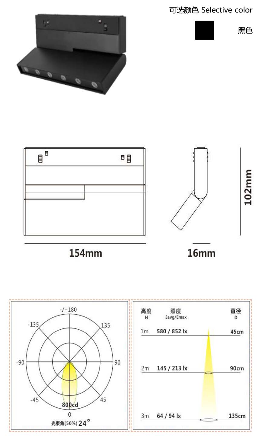 48V低压电路设计,通电后也可安全触碰保证使用安全采用磁吸系统,灯具可以直接插入轨道,自由移动替换,竖装不掉落配合有L型I型等各种连接接驳,安装简单自由;可折叠产品结构,实现大角度的照射方向调节,适用于多种使用场景灯具设计有两种出光规格,窄光束的透镜和宽光束的扩散板,同一灯具实现多种效果